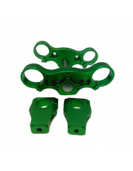 Tés et Pontets CNC vert pour guidon diam.28.6mm